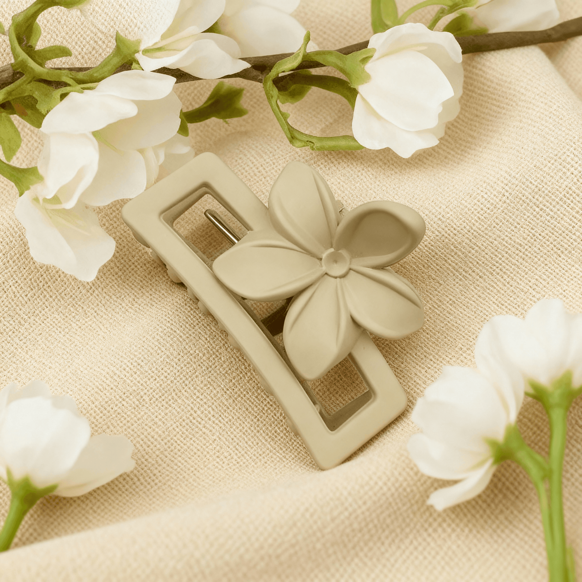 • Design: This specific clip is a matte white or off-white color and features a decorative flower design on the side.